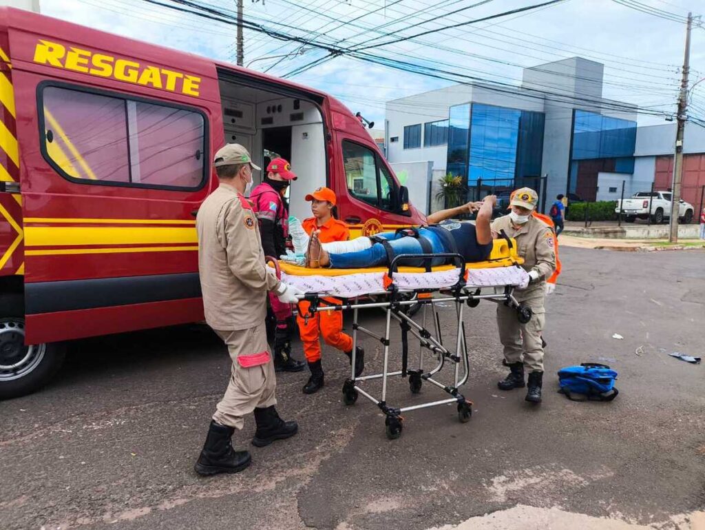Motociclista é atingido por carro e fica gravemente ferido na Avenida Mato Grosso (vídeo)