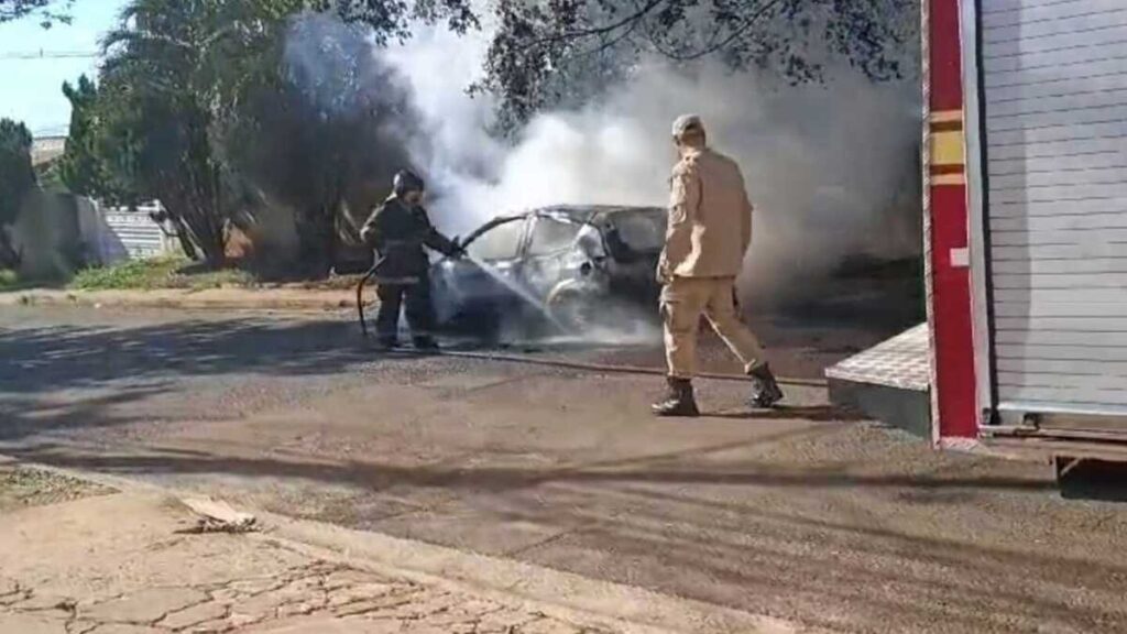 Carro pega fogo e fica totalmente destruído na Avenida Tamandaré (vídeo)