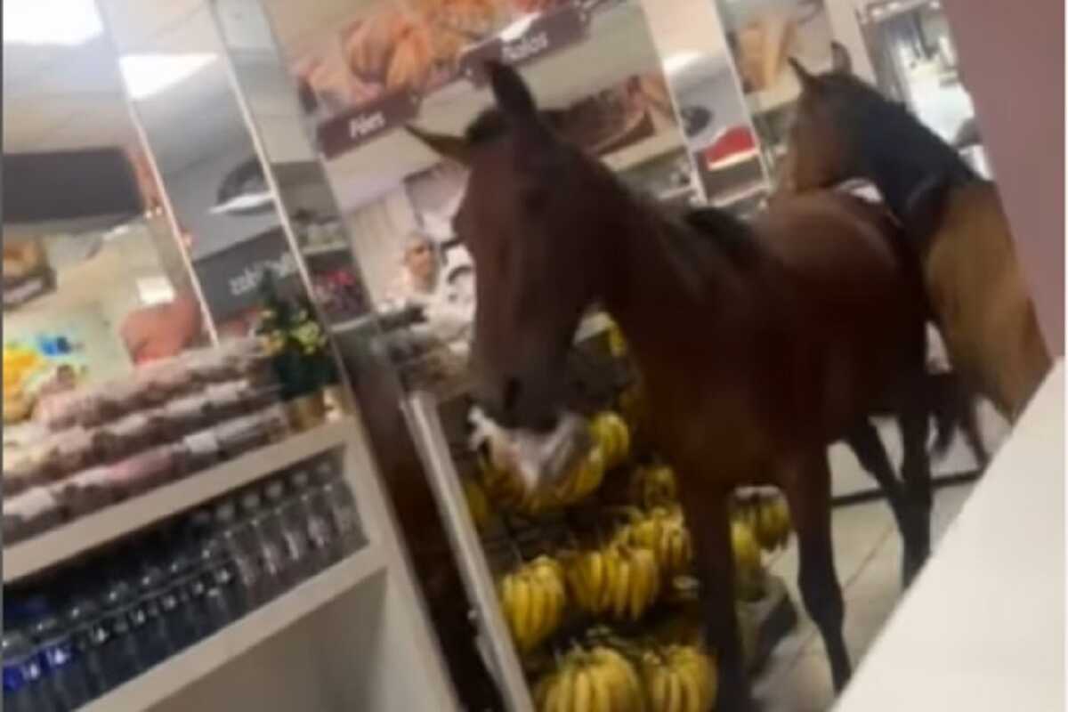 Dois cavalos surpreenderam moradores de Criciúma, em Santa Catarina, ao invadirem uma padaria na tarde desta sexta-feira (27/12) e protagonizarem uma cena inusitada: a tentativa de “roubar” panetones com a boca. A situação foi registrada por uma cliente e rapidamente viralizou nas redes sociais.